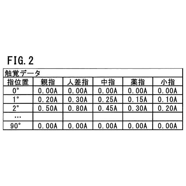 図2は、図1に示した触覚提示システムに使用される触覚データを示すテーブルである。