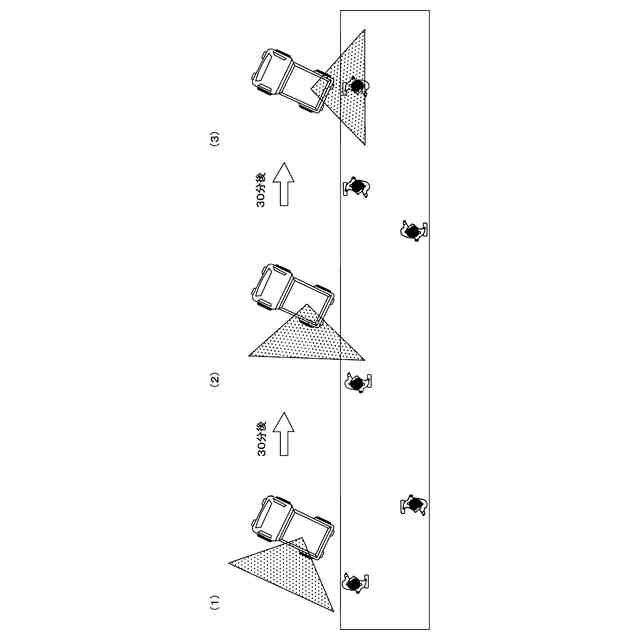 従来、車両に搭載されて周囲の人流を取得する人流取得装置が知られている。例えば、特許文献1に記載の人流取得装置は、監視カメラのプリセット巡回機能を有する人流取得装置である。この装置は、PTZカメラが取得した監視対象範囲の画像データを解析し、監視対象の監視に適したPTZカメラのプリセット撮影位置を決定する。ここで、プリセット撮影位置とは、監視対象範囲内を通行する人物が映る可能性が高い画角であり、パン角度、チルト角度、ズーム位置で規定される。このようなプリセット撮影位置が複数設定され、所定の順序で巡回しながら被写体が撮影されることで監視が行われる。