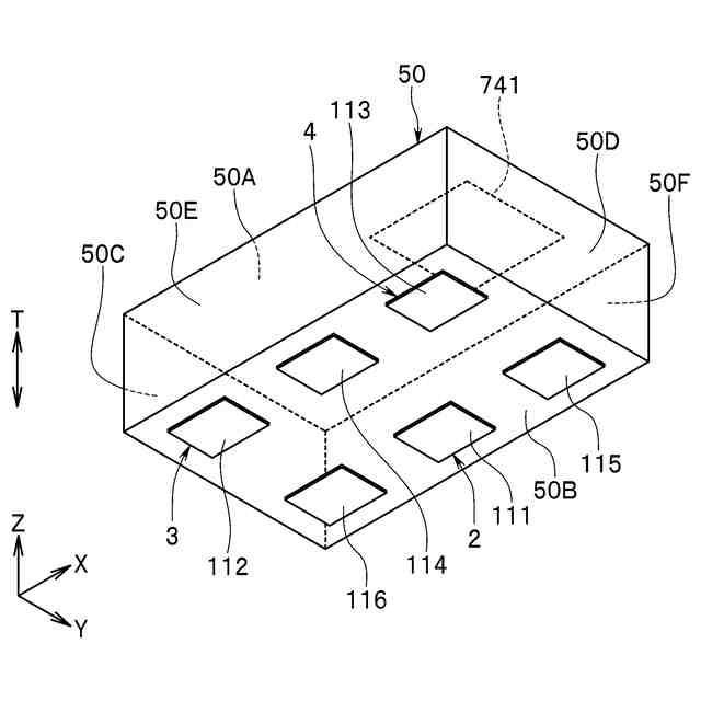 前記積層体は、前記積層方向の両端に位置する第1の面および第2の面と、前記第1の面と前記第2の面を接続する第1の側面、第2の側面、第3の側面および第4の側面とを有し、