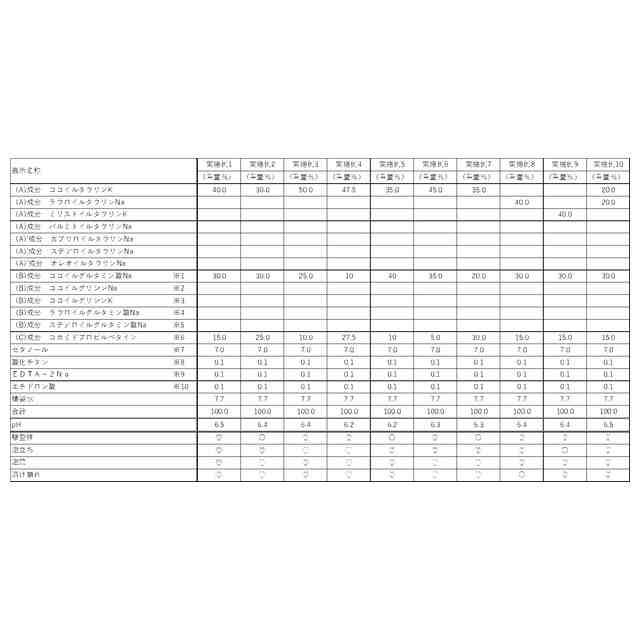本発明者は、上記課題を解決するため、鋭意研究した結果、N-アシルタウリン塩とN-アシルアミノ酸塩を特定の割合で組み合わせ、かつ両性界面活性剤を特定の割合で配合および特定のpHとすることで、製造時の離型性に優れ、弱酸性のpH領域で使用でき、溶け崩れが適度であり、泡立ち・泡質に優れることを見出した。