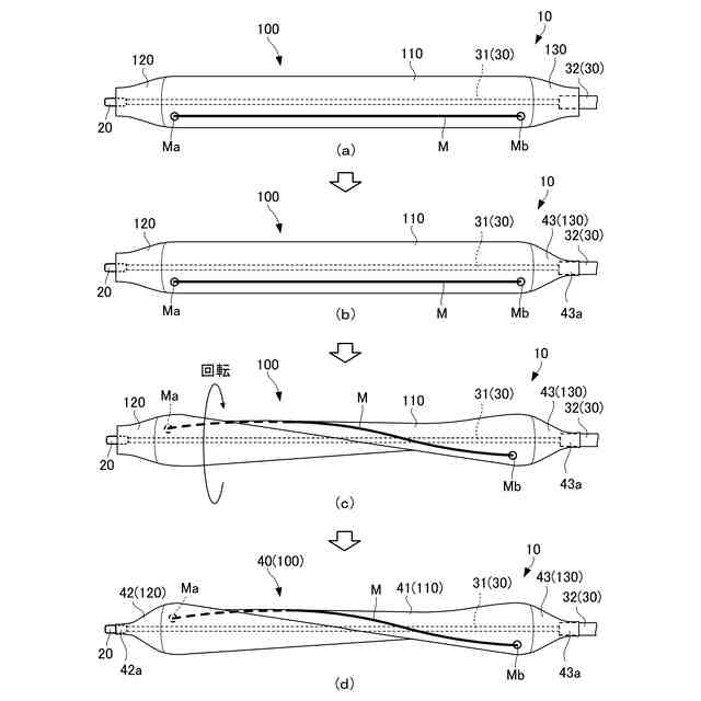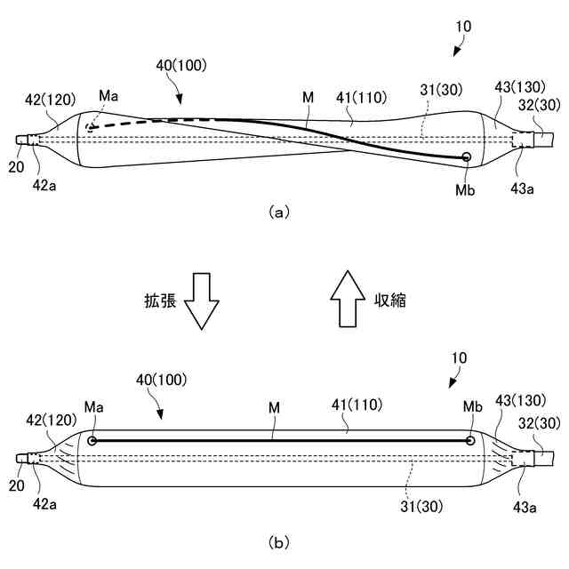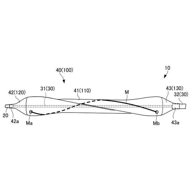 【解決手段】本発明に係るIABP用バルーンカテーテル10は、カテーテルチューブ30と、カテーテルチューブ30の遠位端に取り付けられた先端チップ20と、カテーテルチューブ30の遠位端部に設けられており、カテーテルチューブ30の近位側から供給される流体により拡張可能なバルーン40と、を有し、バルーン40が、筒状に形成されているバルーン母体100により構成されており、バルーン母体100の近位端部130が、カテーテルチューブ30に接合されており、バルーン母体100の遠位端部120が、カテーテルチューブ30に取り付けられたバルーン母体100の近位端部130に対して周方向に所定角度以上回転した状態で、先端チップ20またはカテーテルチューブ30に接合されていることを特徴とする。