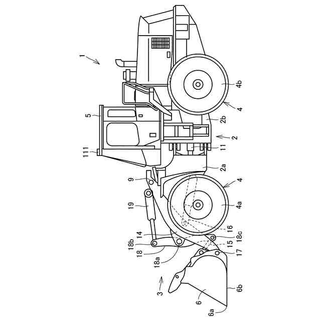 刃先が目標位置iにあるホイールローダを模式的に示す図である。