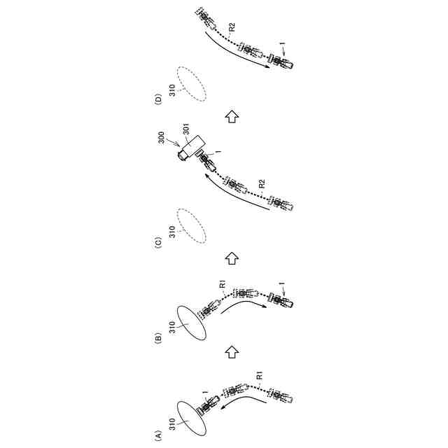 積込み終了時の作業機の動作の変形例を示す第1の図である。