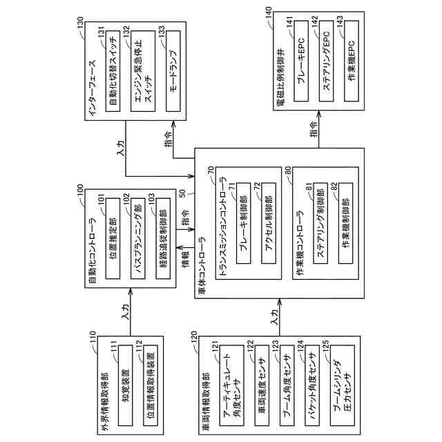 ホイールローダの自動制御システムの構成を示すブロック図である。