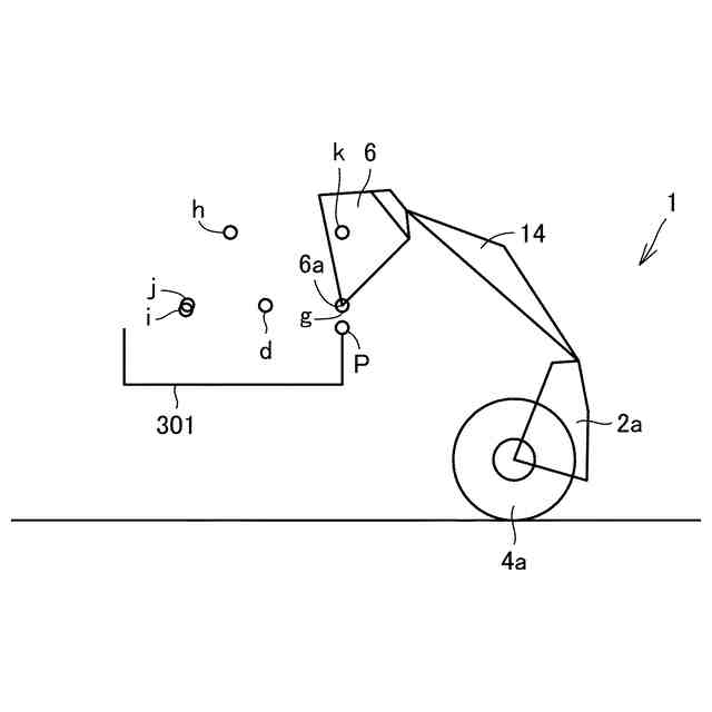 刃先が目標位置kにあるホイールローダを模式的に示す図である。