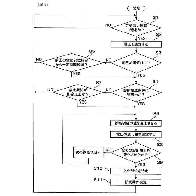 実施形態9における、劣化診断及び低減動作の流れを示すフロー図。