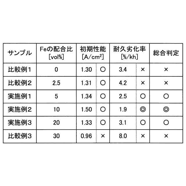 燃料極層にNiが含まれる電気化学セルを厳しい作動環境(高温度、高湿度、高電流)の下で長時間作動させた場合、燃料極層内でのNiの移動、凝集が引き起こされる。燃料極層内でNiが移動または凝集した場合、燃料極層の内部抵抗が増加し、また、反応場としての三相界面(燃料ガス、Ni、電解質(YSZ)の境界)が減少する。これにより、電気化学セルの性能が低下し、所望の性能を得ることができない。従って、長時間作動させた場合であっても所望の性能を維持することができるような、耐久性の向上した電気化学セルが望まれる。