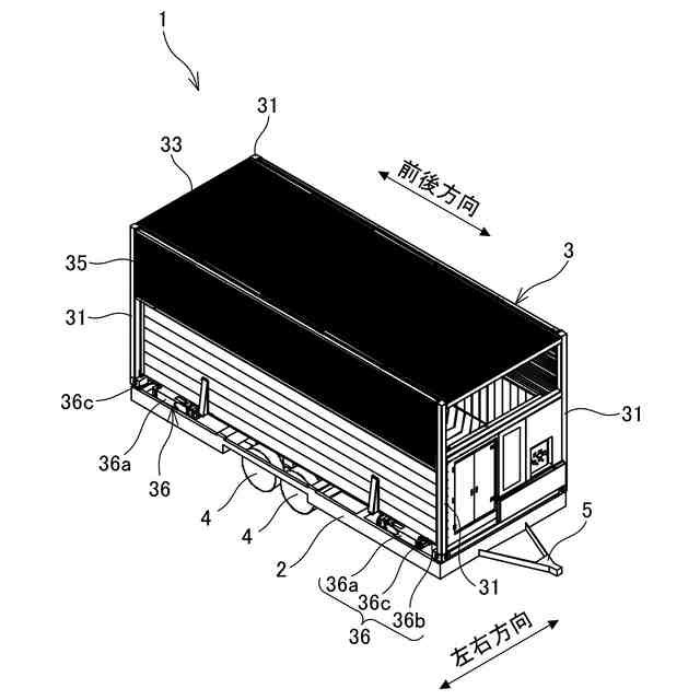 側壁を展開して床とともにデッキを構成する場合、デッキ上面にヒンジを設けて床と側壁とを接続し、側壁を回動自在にすることが考えられる。しかしながらこの場合、強度が高いヒンジではサイズが大きくなるので、外観に影響を及ぼす。