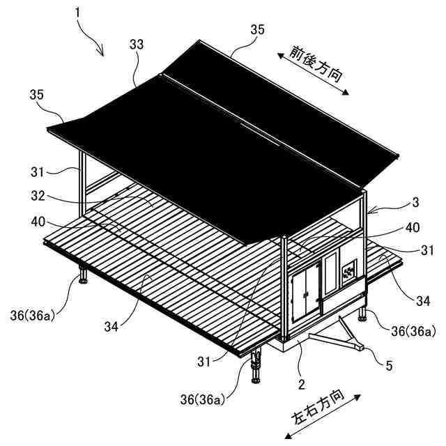 この発明によれば、隙間埋め材が側壁にもたれ掛かった状態で、側壁が閉状態から開状態になることで、隙間埋め材が床と展開された側壁との間の隙間に嵌り込むので、デッキの隙間を自動的に埋めることができる。