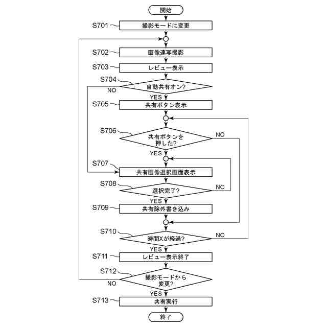 本発明は、撮影装置における撮影画像の自動共有の除外方法に関する。