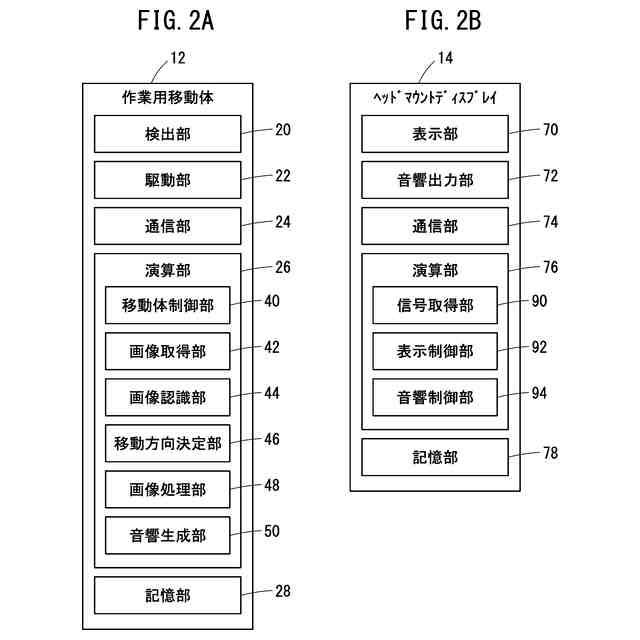 図2Aは、作業用移動体の機能ブロック図である。図2Bは、ヘッドマウントディスプレイの機能ブロック図である。