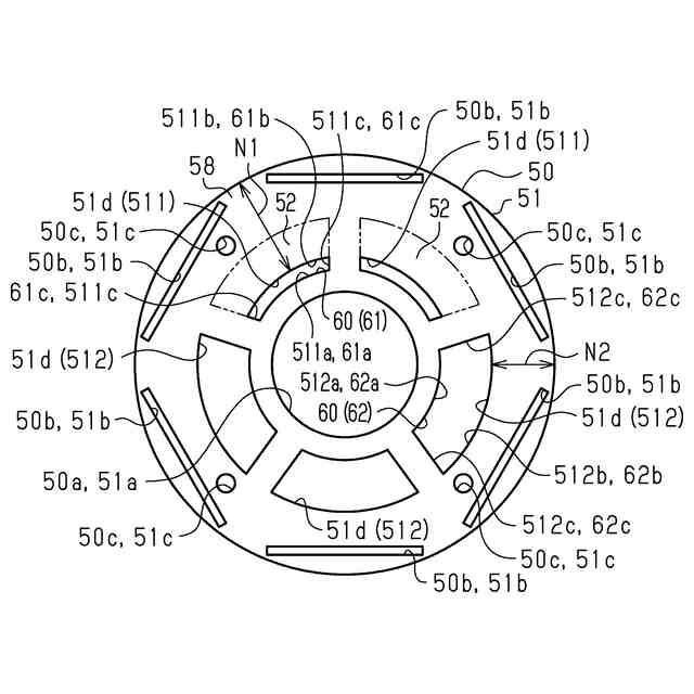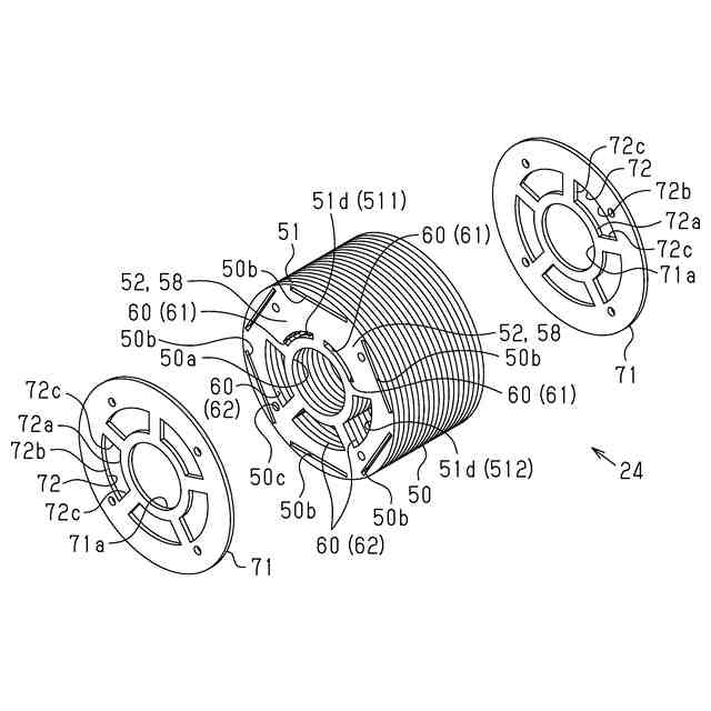 これによれば、ロータの重量のバランスを軸方向に一定にできるため、バランス調整をしたロータを簡単に製造できる。