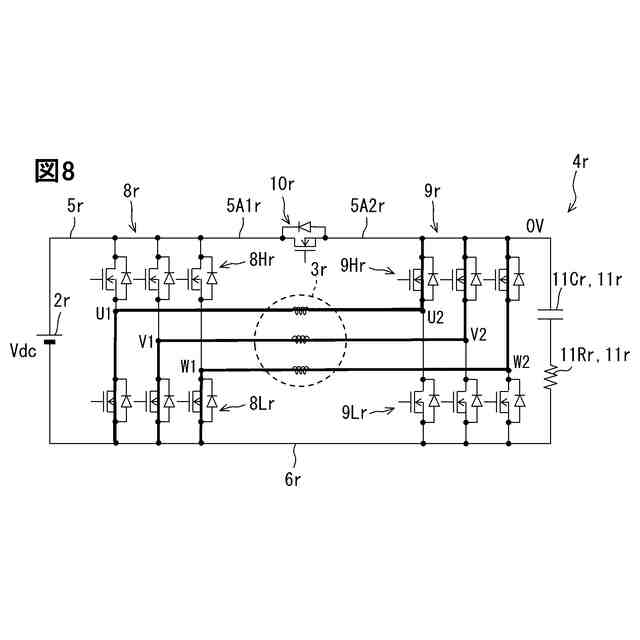 【解決手段】電力変換回路4は、インバータ8,9を有している。インバータ8は、出力線13を介して巻線3U,3V,3Wの一端に接続されている。インバータ9は、出力線13を介して巻線3U,3V,3Wの他端に接続されている。出力電流センサ123は、巻線3U,3V,3Wに流れる電流として、出力線14に流れる電流を検出する。出力電流センサ123は、出力線14に設けられている一方で、出力線13に設けられていない。配線5A,6Aは、巻線3U,3V,3Wを介さずにインバータ8とインバータ9とを接続している。切替電流センサ124は、配線5A,6Aに流れる電流を検出する。切替電流センサ124は、配線5A及び配線6Aのそれぞれに設けられている。