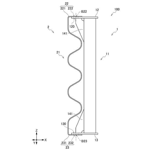 従来、ライナープレートの強度を高めるための補強構造が研究されている。ライナープレートを用いる工法として、例えば鉛直方向に複数積層する工法や、立設したうえで鉛直下方向に荷重をかけて固定する工法等がある。この場合において、ライナープレートは、鉛直方向の荷重に対して座屈変形しない強度が要求される。そのため、鉛直方向の荷重に対抗できるライナープレートの補強構造が切望されている。