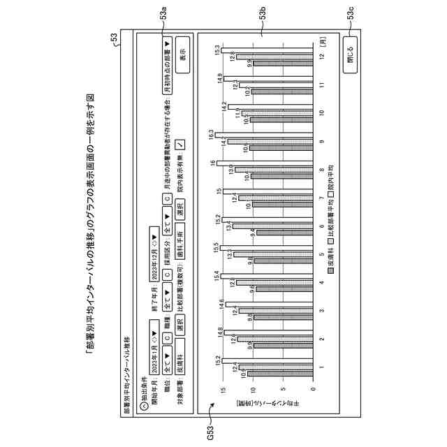 図6は、「部署別平均インターバルの推移」のグラフの表示画面の一例を示す図である。