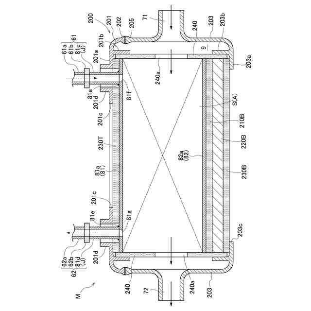 前記内部流路は、複数の副流路と、前記副流路へ気体を分配する分配部と、前記副流路からの気体が合流する合流部と、を有し、