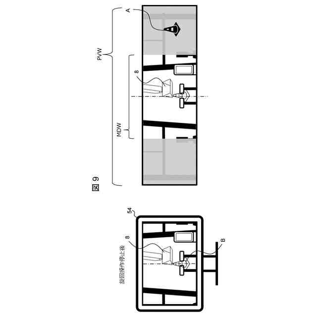 旋回停止後のパノラマ映像および表示装置に表示される表示態様を示す図である。