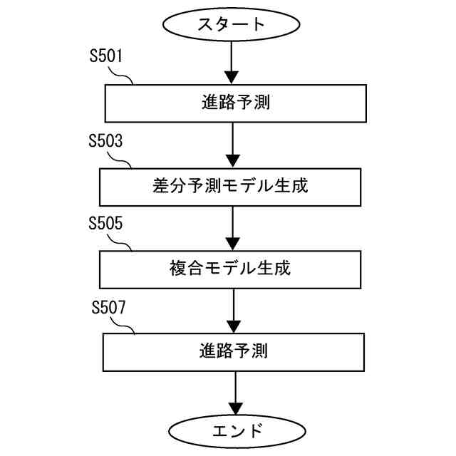 本発明の好ましい実施形態に係る進路予測装置の処理手順を説明するためのフローチャートである。