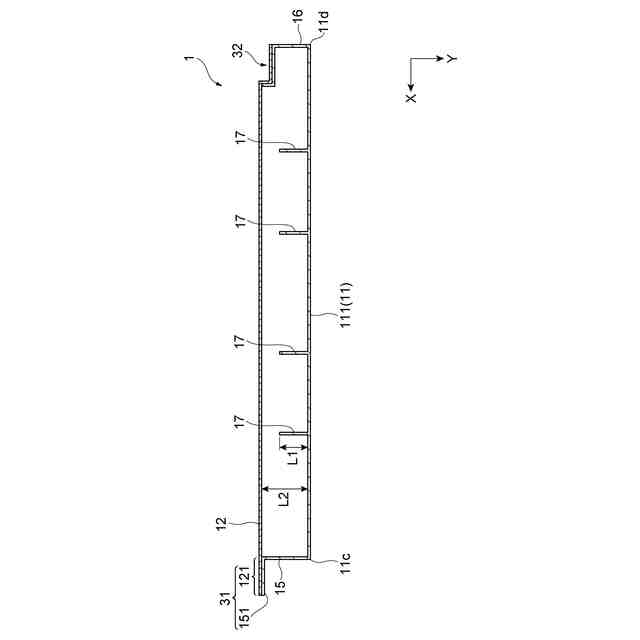 前記複数のインナーリブの前記第1方向の長さは、前記第1板部と前記第2板部の間の長さより短い、