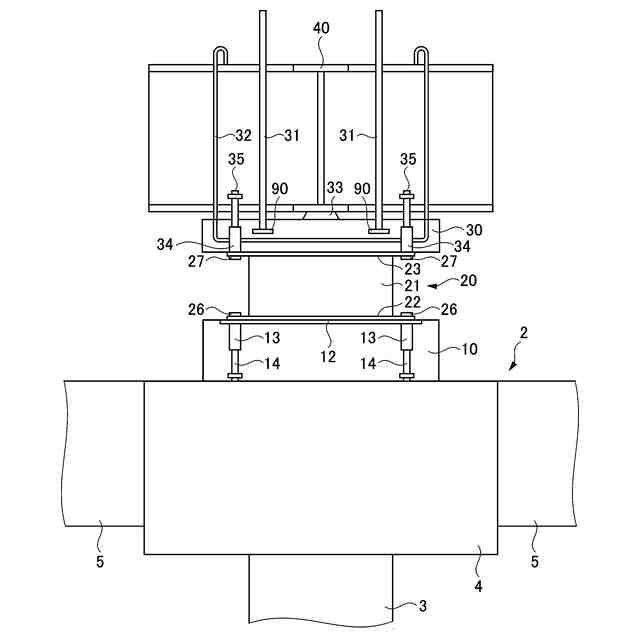 前記上部基礎の底面には、貫通孔が形成されたフランジプレートが設けられ、