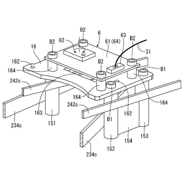 前記第2アームは、前記第1アームに連結されているアームベースと、前記アームベースから前記第2回動軸に沿う方向の一方側に向けて立設されている複数の支柱と、複数の前記支柱に固定されている載置部材と、を有し、