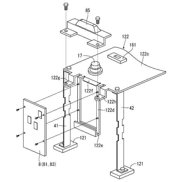 前記ブレーキを前記ブレーキ状態から前記ブレーキ解除状態に切り替える前記第2電子部品としてのブレーキ解除ボタンと、を有し、