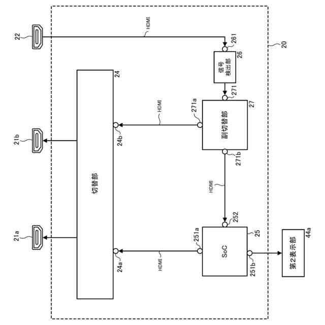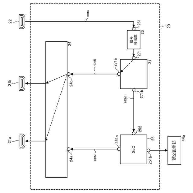 第1状態は、外部入力映像を、処理部を経由せずに出力端子から出力させ、