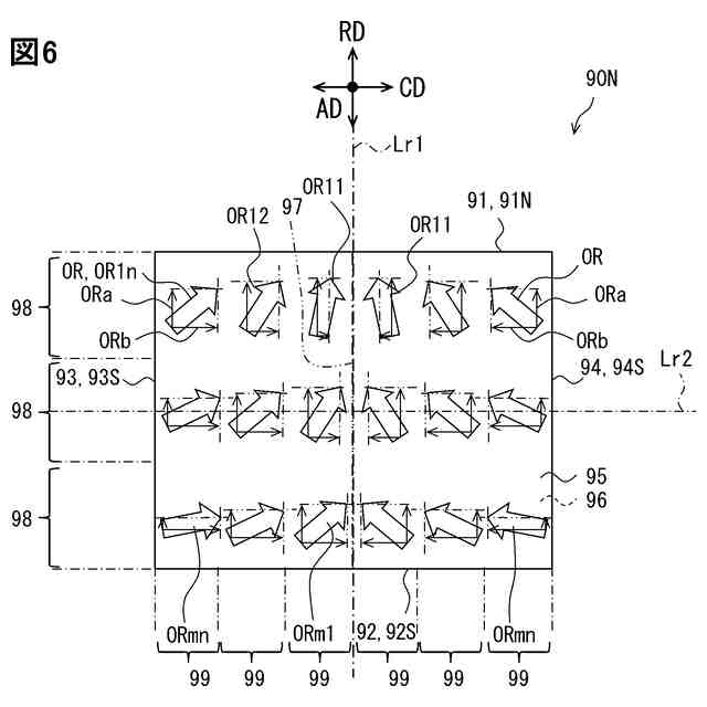 複数の配向の少なくとも一部は、第1方向に沿う第1配向成分(ORa)、および、第2方向に沿う第2配向成分(ORb)を有し、