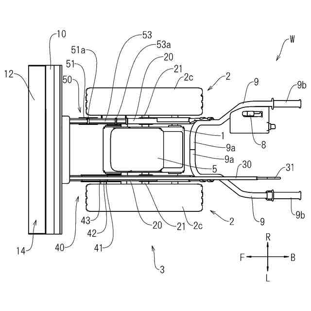 特許文献1の構成で除雪作業をおこなう場合、ドーザ部で押された雪、またはドーザ部ですくい上げられた雪は、ドーザ部を回動させることによってドーザ部から排雪する。しかし、ドーザ部から排雪する雪は単にドーザ部から落下する形態なので、作業者が意図するような排雪ができないことがある。また、雪がドーザ部に貼り付くことがあり、単にドーザ部を回動させただけでは、排雪が完了できない場合がある。貼り付いた雪は、作業者によって取り除く必要があるが、必要都度、前方のドーザ部に移動して除去するのは人的な負担を要する。貼り付いた雪を取り除く装置を付加することも考えられるが、車重が増加することが予想され、扱い難い機体となること懸念される。
