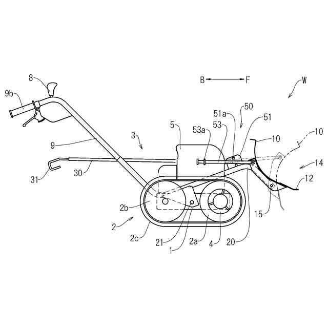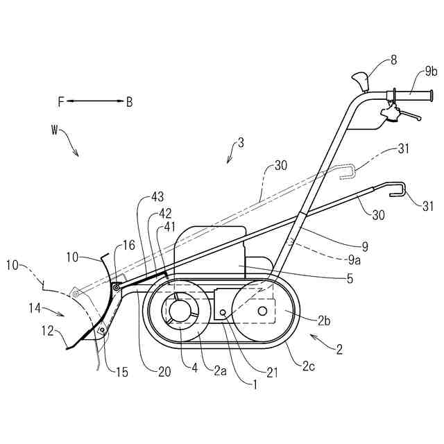 例えば特許文献1に記載のように、走行部と、この前方にドーザ部を配置し、前進走行することによってドーザ部で除雪作業をおこなう作業機がある。ドーザ部は走行部に対して回動可能な操作ハンドルの先端部に回動自在に連結され、操作ハンドルの昇降に伴って上下昇降する。そして、拘束解除機構がドーザ部と操作ハンドルとの拘束を固定および固定解除することによって、操作ハンドルに対してドーザ部の角度を変更可能に構成したものである。