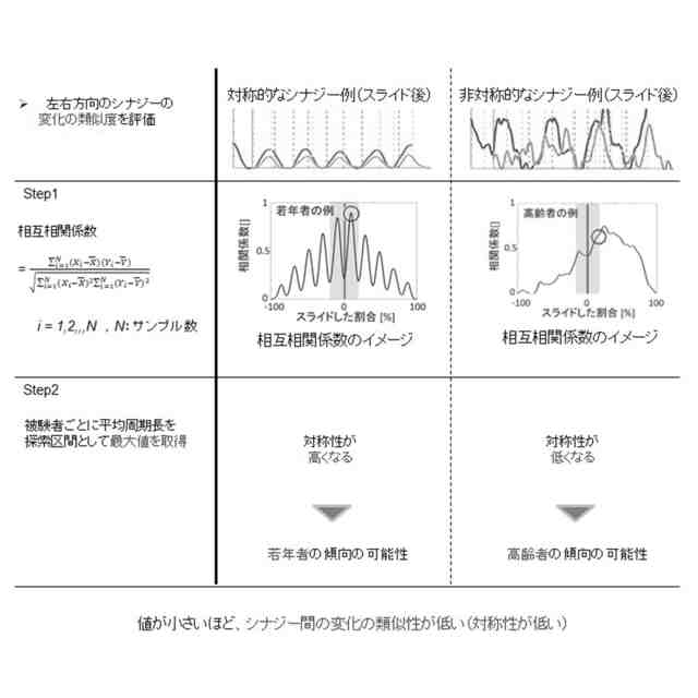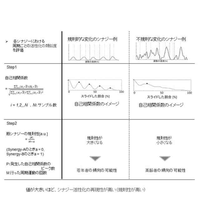 抽出される前記一方筋シナジー及び前記他方筋シナジーは、空間パターンと時間パターンで表現され、