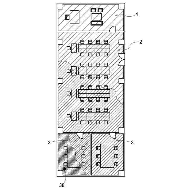 例えば、オフィスにおいては、社員等の人員が業務を行うオフィスエリアや会議室、社長室等の個室に区画される。