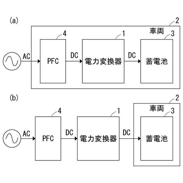 本実施の形態の電力変換器1は、図1を参照すると、電気自動車等の車両2に搭載された蓄電池3(バッテリー)を充電する充電装置として用いられる。