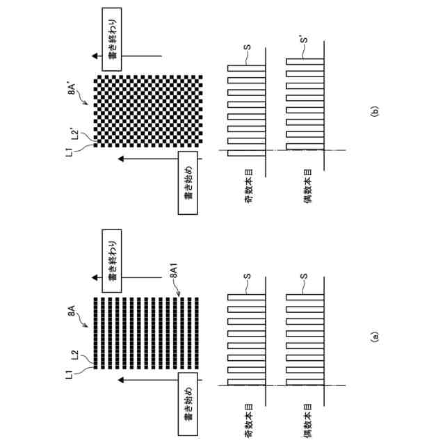 第1モードへの切り替え設定を行わなかった場合((a))と行った場合((b))とで塗りつぶし部の塗りつぶし状態の違いの一例を示す図である。