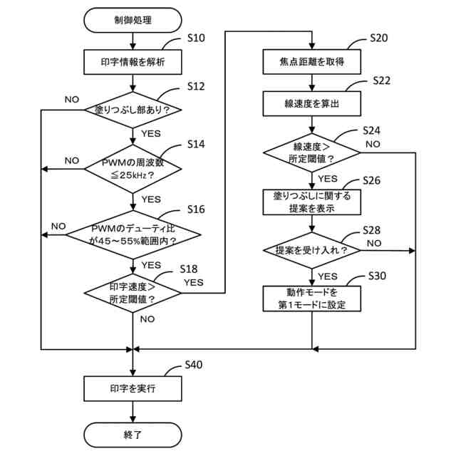 本願によれば、動作モードとして第1モードに設定されているとき、制御信号の出力タイミングを隣接する走査ライン間で異ならせるように出力部を制御するようにしたので、レーザ発振器に変動サイクルが速いエネルギ変動が生じる状況においても、照射結果に縞模様を発生させないことが可能となる。