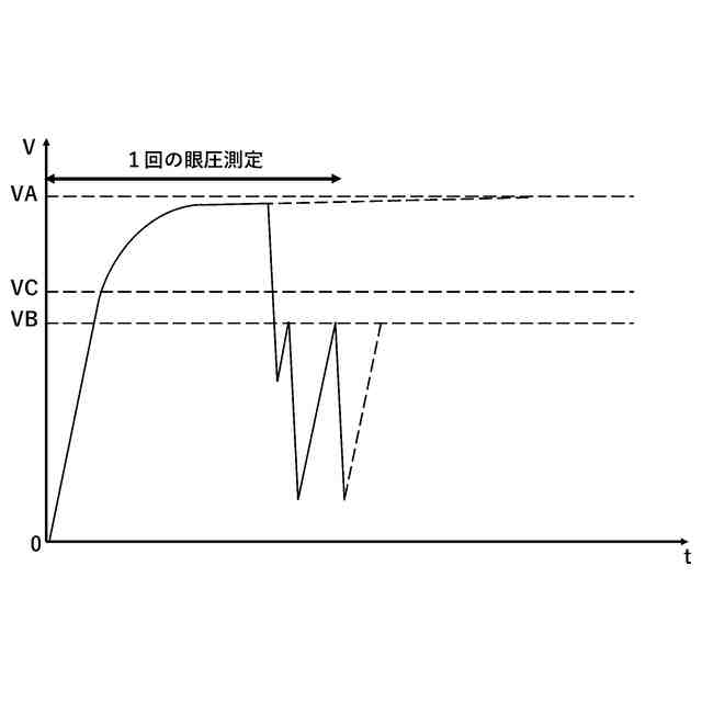 眼圧測定時のコンデンサの充電電圧曲線を示すグラフである。