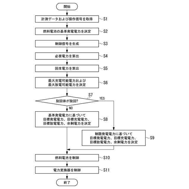 作業機械は、蓄電装置に充電された電力が枯渇しないように、燃料電池の発電量を制御することが好ましい。一方で、燃料電池の発電によって蓄電装置が十分に充電されている場合、作業機械の動作によって発生した回生電力は、熱エネルギーに変換して消費せざるを得ず、エネルギー効率が悪くなる可能性がある。