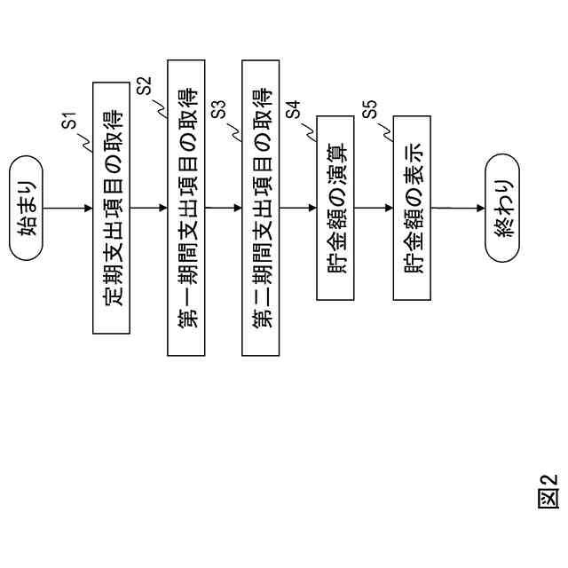 前記第一期間長よりも長い期間である所定の第二期間長の期間を第二期間として、第二期間にユーザが支出する支出項目であって前記定期支出項目及び前記第一期間支出項目以外の支出項目を第二期間支出項目として、各第二期間支出項目の単価を取得する第二期間支出項目取得部を更に含み、