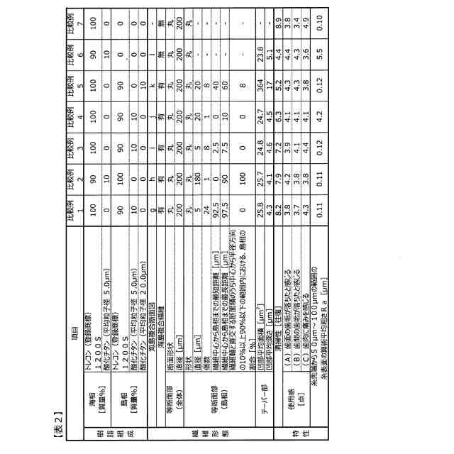 テーパー長が、3mm以上20mm以下であり、テーパー部に表出した島相内に、面積が1μm