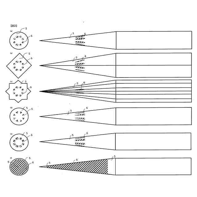 【解決手段】繊維軸方向に延在する海相と島相とを有する樹脂組成物からなり、繊維軸方向に一定の繊維径および断面形状を有する等断面部と前記等断面部の少なくとも一端から延びかつ繊維径が漸減するテーパー部とを有する形状のブラシ用毛材であって、繊維軸と直交する断面において、繊維の中心を原点とし、繊維の外周を100%の位置としたとき、島相は半径方向の10%以上90%以下の範囲にのみ存在し、テーパー部に表出した島相が形成する表面の少なくとも一部は、海相が形成するテーパー形状をなす表面よりも繊維の中心に向かう方向に凹部を形成している、ブラシ用毛材。