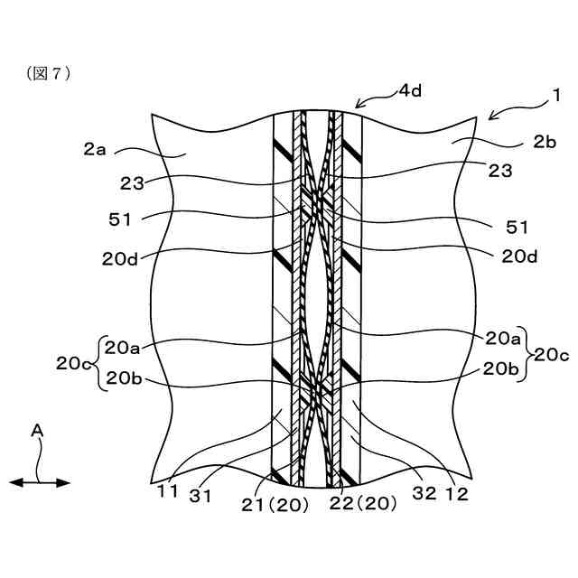 他の実施形態(1)の緩衝シートの部分断面図である。