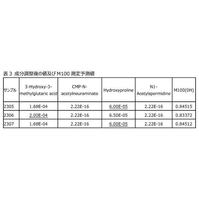 〔3〕工程a1:標準物質としてのラテックス組成物について〔1〕に記載の方法により分析を行い、分析結果と、ラテックス組成物に関する情報との関連の解析結果を得る工程、及び