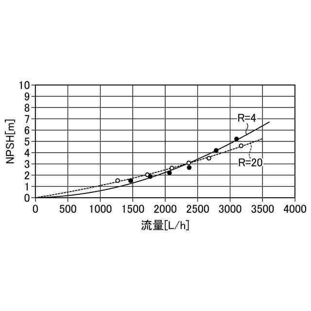 図6は、実施形態に係る流路形成面の曲率半径と正味吸込ヘッドとの関係を示す図である。