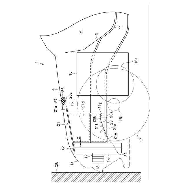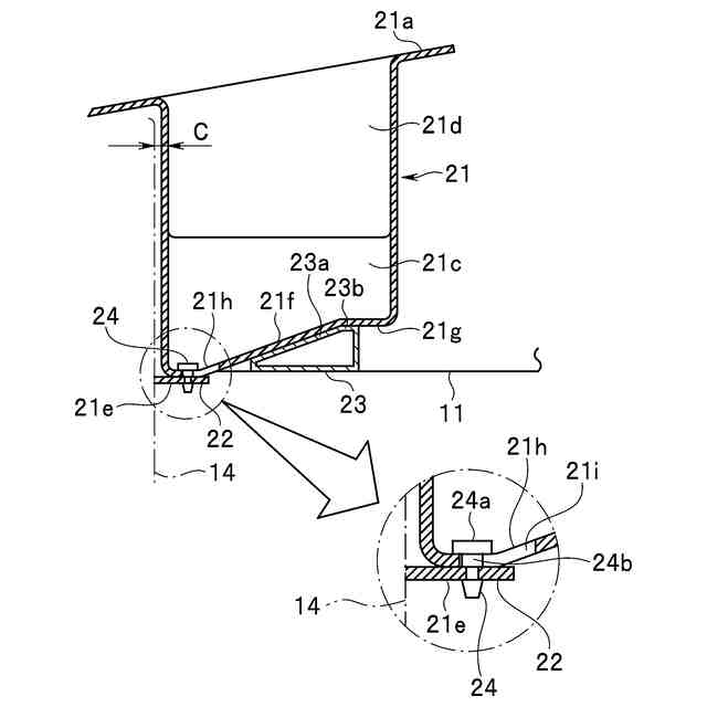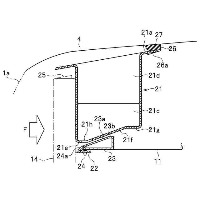 又、この文献では、フロントトランクの後部にラジエータやエアコンユニットが配置されている。フロントトランクの底部にはビード部が形成されている。フロントトランクはビード部にてバンパビームを車体後部から支持している。