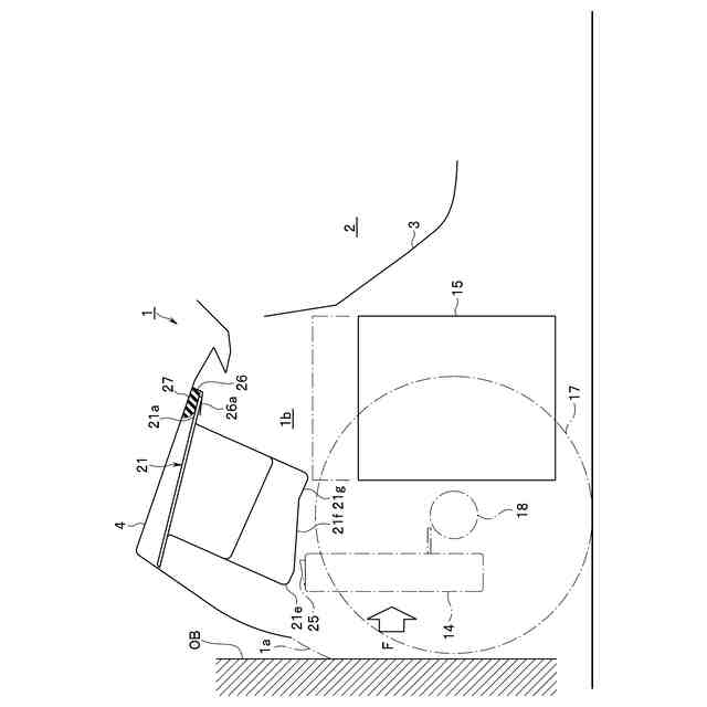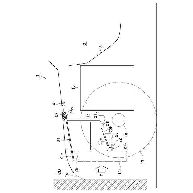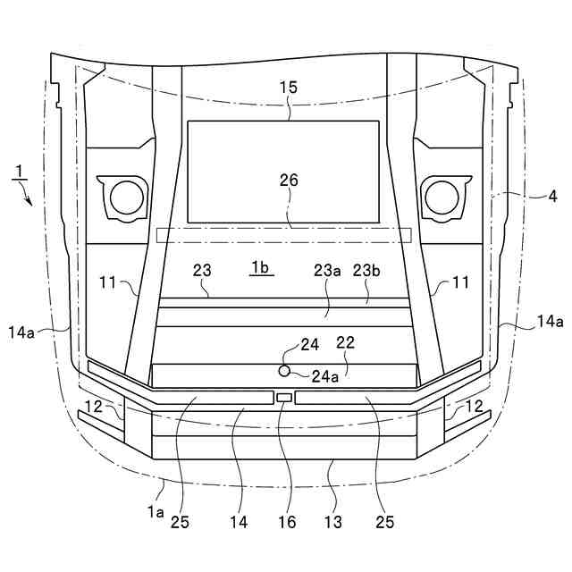 このように、引用文献1に開示されている技術では、前面衝突時におけるフロントトランクよる衝撃荷重の分散は、収納されている内容物によって大きく左右されることになる。
