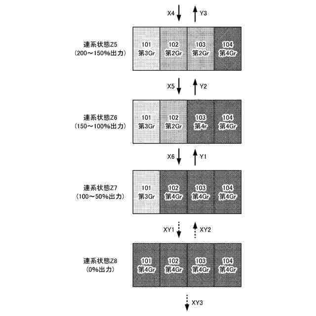 前記第1グループおよび前記第4グループを組み合わせて前記システムの合計出力電力を制御するように構成され、
