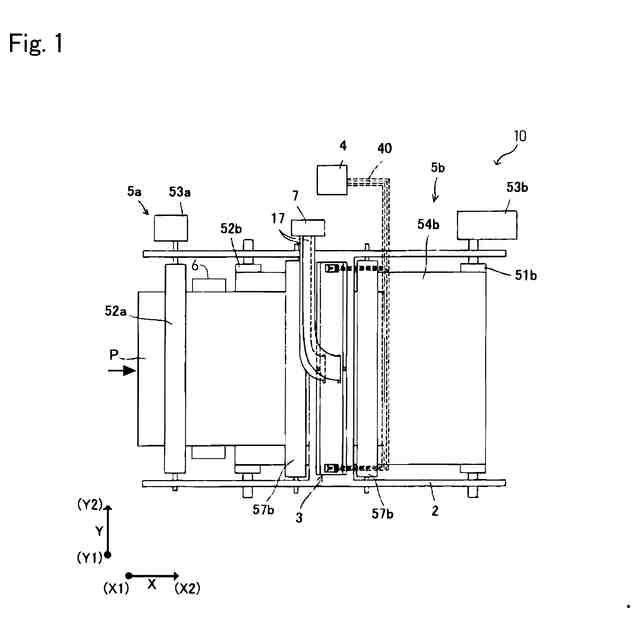 以下の説明において媒体Pが搬送される搬送方向を方向Xと称し、媒体Pが搬送される上流をX1側、下流をX2側として説明する。また、媒体Pにインクが着弾する着弾面の面内方向において、方向Xに直交する方向を方向Yと称し、方向Yにおける液体吐出装置10の一端をY1側、他端をY2側として説明する。さらに、方向X、及び方向Yの双方に直交する方向であって、ヘッドユニット3から媒体Pに吐出されるインクが吐出される方向を方向Zと称し、ヘッドユニット3から吐出されるインクは、方向ZのZ2側からZ1側に向かって吐出されるとして説明する。本実施形態において方向X、方向Y、及び方向Zは、互いに直交する軸として説明を行なうが、液体吐出装置10が備える構成が互いに直交して配置されていることに限定されるものではない。これらの方向X,Y,Zは、他の図にも適宜示した。