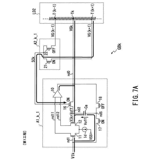 尚、階調電圧の高精度化を図るために、上記したガンマアンプを構成するトランジスタのサイズを大型化することが考えられるが、その分だけ複数のガンマアンプを構築するために必要となる回路面積が増えるという問題が生じる。