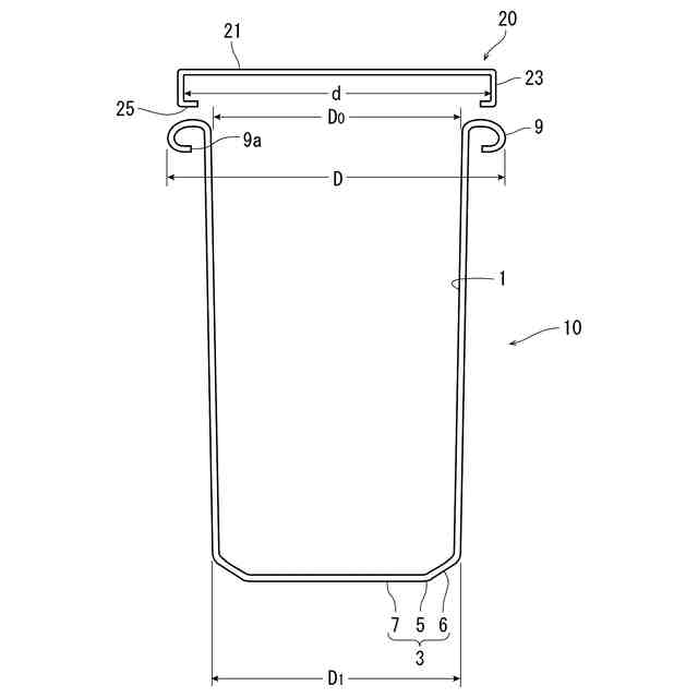 しかるに、近年における飲料用の容器の分野では、小売店や飲食店において、店頭にてコーヒーやビールなどが販売されており、これらの飲料をカップ状の容器に充填した後、蓋を装着して消費者に提供している。このような販売形態において、飲料の種類や販売メーカなどによって容器に装着される蓋のデザインや大きさが異なり、様々な蓋が生産されている。特に、このような販売形態で使用される蓋は、金属製の蓋よりもプラスチック製の場合がほとんどであり、その大きさも様々である。従って、このような販売形態に金属製の容器を適用しようとすると、金属容器の口部径を蓋に合わせた口部径とすることが必要となり、その口部径を蓋に合わせた大きさとするために金型の変更などが必要となり、コストがかかるという問題があり、その改善が求められている。