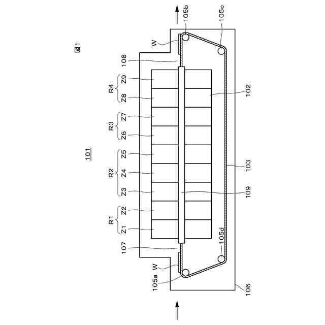 加熱ゾーンでは、基板に対して熱風が吹きつけられることによって、はんだを溶融させてプリント回路基板の電気配線回路と電子部品の電極がはんだ付けされる。リフロー装置では、加熱時の温度を所望の温度プロファイルにしたがって制御することによって、所望のはんだ付けがなされる。搬送チェーンは、例えばアルミ合金といった金属製のレール(以下、搬送コンベアレールと適宜称する)によって案内される。